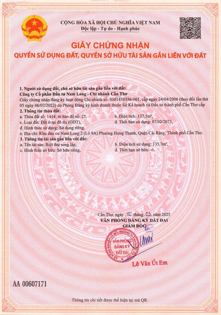 – Chủ đầu tư: Nam Long Chi Nhánh Cần Thơ