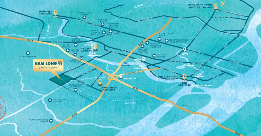 (Trung tâm của Đồng Bằng Sông Cửu Long) nhịp và sầm uất, Nam Long II Central Lake được ví như “tọa độ vàng”, kết nối thông suốt với hệ thống giao thông huyết mạch.